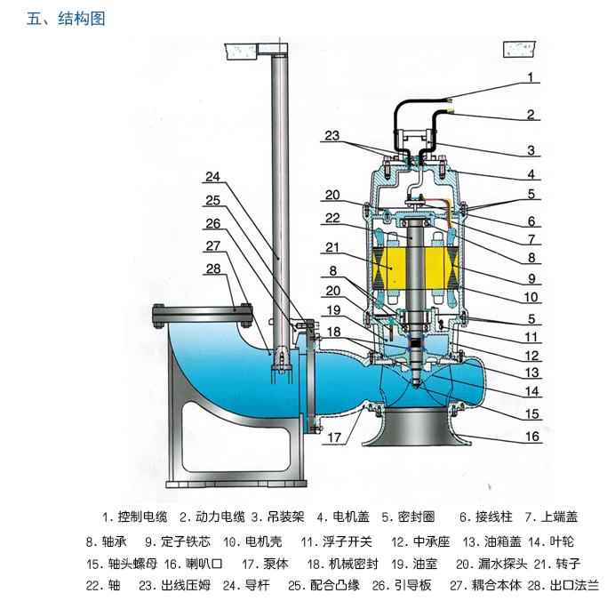 WQ潛水排污泵:潛水排污泵是潛水式的污水泵,能將污水中長纖維、袋、帶、草、布條等物質(zhì)撕裂、切斷,然后順利排放,特別適合于輸送含有堅(jiān)硬固體、纖維物的液體以及特別臟、粘、滑的液體。有兩種類型:WQ、JYWQ、WQK、AS、AV型潛水式排污泵